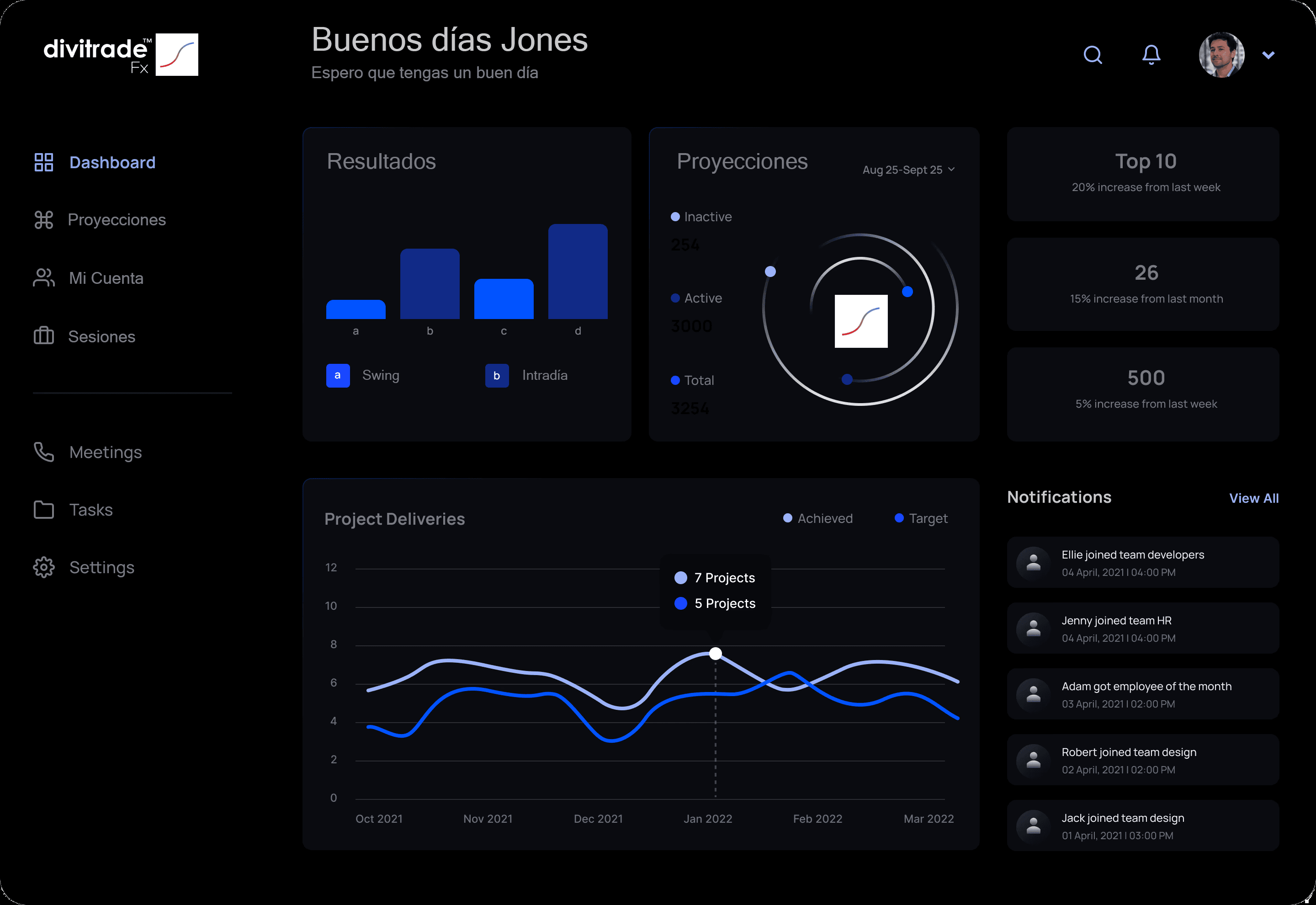 “ Sabemos lo difícil que es enfrentarse al gráfico en solitario. Por eso en DivitradeFX no solo te damos formación, te damos acompañamiento continuo y proyecciones para blindar tu operativa. Tu rentabilidad es nuestra única métrica de éxito. “